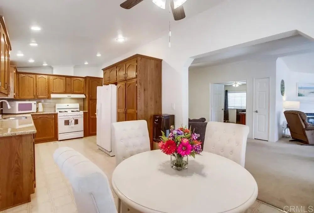 Pride of ownership shines in this beautifully upgraded home located in the highly sought-after 55+ gated community of Lake Jennings Park Estates. This spacious home features a large primary bedroom with a walk-in closet and attached bath offering dual sinks, a walk-in shower an additional exterior door that leads to the spacious out door area. The living room includes an electric fireplace and great windows for plenty of light. Not to forgot the well-appointed kitchen offering granite countertops, abundant cabinetry, recessed lighting and a sit-down eating area surrounded by windows. The dining room offers a large entertaining area and a built-in hutch. The bonus room is being used as an office and offers extra room for a guest bed. Upgrades include newer HVAC, ceiling fans and plenty of storage throughout. Enjoy a private backyard oasis with low-maintenance landscaping, artificial turf, colorful plants, fruit trees, multiple sitting areas and a covered patio perfect for relaxing or entertaining. The extended carport provides ample parking along with a large storage shed. Lake Jennings Park Estates offers land ownership (no space rent), a clubhouse, heated pool and spa, game room with two billiard tables and multiple card tables, fitness center, pickleball court, library, RV parking, walking paths, and stunning Lake Jennings' views. Conveniently located near shopping, dining, medical offices and freeway access. Low monthly HOA dues of $213. Move-in ready and located in one of East County's most desirable gated senior communitiesdont miss this opportunity!