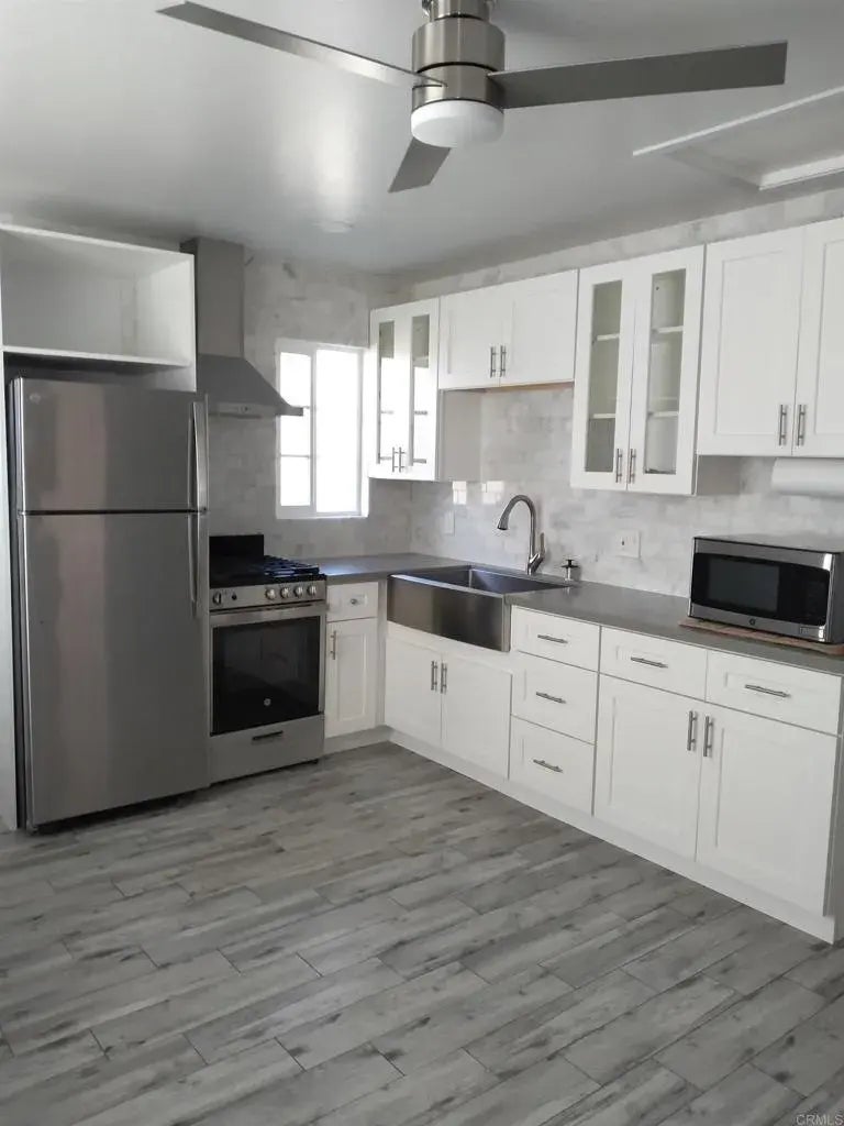 Attached guest house available for rent July 1, 2025. This fully renovated 1 bedroom, 1bathroom unit is located in the Seven Oaks 55+ community. The unit has upgraded appliances, stackable washer/ dryer, a private backyard entrance, and street parking. Utilities are included and HOA amenities are available. Must see in person to appreciate!