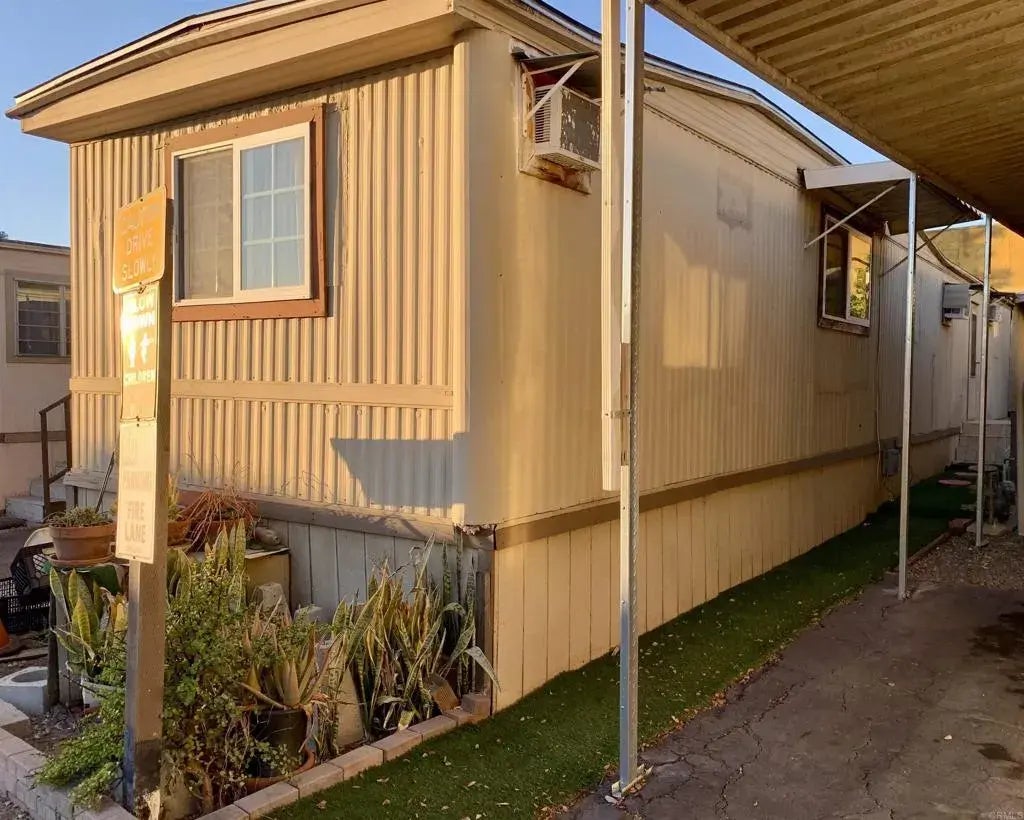 LOW SPACE RENT ONLY $927!!! Family mobile home park conveniently located by the 94 freeway and 54 freeway. This beautiful mobile home offers a big size lot with up to 4 cars of parking space and plenty of storage! The mobile home boast 2 bedroom and 1 full bathroom. An additional spacious backroom offering plenty of space for laundry room. Appliances like stove, fridge and AC are included in the sale. The backyard features 2 sheds for additional storage and an area to start your own garden. The park offers a nice clean pool, and a community park conveniently located across the street. More pictures coming soon!!