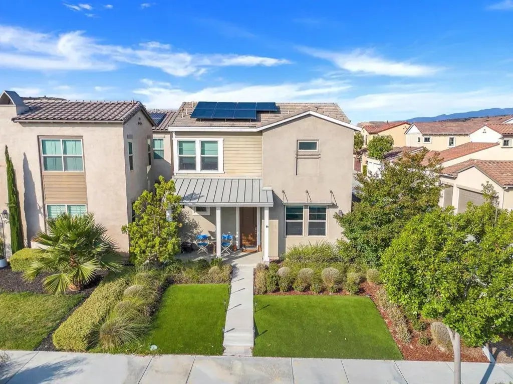 Welcome to 1953 Santa Maya, a stunning 3-bedroom, 2.5-bathroom home located in the vibrant Escaya community of Chula Vista. This residence combines modern design with comfort and efficiency. The open-concept main level features a spacious living area, dining space, and a chefs kitchen equipped with quartz countertops, a large center island, stainless steel appliances, and elegant tile backsplash. Upstairs, the primary suite offers laminate flooring, a walk-in closet, and a spa-like bath with dual vanities and an oversized rain shower. Two additional bedrooms, an upstairs laundry room, and a flexible den complete the layout, offering functionality for families or remote professionals. Enjoy outdoor living in the beautifully landscaped backyard with artificial turf, flowering plants, and a private patio with gas hookupideal for entertaining. The oversized 2.5-car garage includes an EV charging outlet and a separate bay for storage or recreation equipment. Home comes with fully paid off solar system. As part of the Escaya master-planned community, residents have access to a town center with shopping and dining, a resort-style pool, clubhouse, fitness center, parks, playgrounds, and scenic trails. With owned solar panels, low HOA fees, and a location just 15 minutes from downtown San Diego, this home offers the perfect blend of lifestyle and convenience.