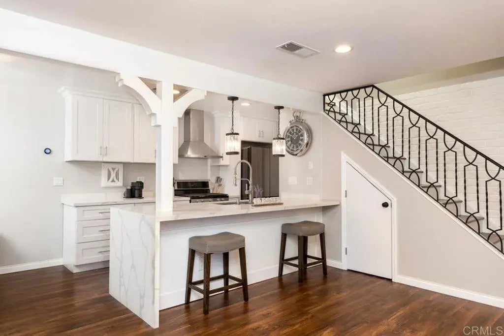 Beautiful move in ready condo, featuring chef's kitchen with stainless steel sink and appliances, sleek quartz counter tops with breakfast bar and waterfall edge, soft close shaker style cabinets and decorative overhead pendant lamps. Luxurious bathroom with carrera white marble floors and counters, oversized bath tub and dual vanities. Spacious master bedroom with walk in closet. One car garage and one assigned driveway space with plenty of street parking for your guests. Kitchen pantry has laundry hookups for optional stacked washer/dryer in unit. Luxury wood finish vinyl plank flooring in common areas. Newer vinyl dual pane windows. Central heating and A/C with Nest smart thermostat along with Ring doorbell. Recessed LED lighting throughout home and crystal chandelier in dining area.