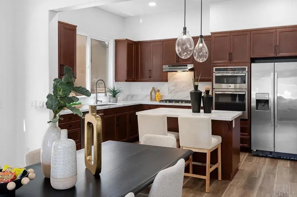 Set in a quiet, tucked-away pocket of Chula Vista, 1686 Pember Ave is a detached three-story home that checks all the boxes for comfort, space, and style. From the moment you step inside, you're welcomed by an open-concept layout with sleek new flooring, fresh paint, and natural light pouring through every room. The main level flows seamlessly from the spacious living area with fireplace and built-in beverage fridge. A designer kitchen featuring quartz countertops, statement lighting, and an oversized island perfect for casual dining or entertaining. Upstairs, the primary suite serves as a true retreat with its own private balcony, large walk-in closet, and spa-inspired bath with soaking tub and dual vanities. Two additional bedrooms, a full guest bath with double sinks, and a dedicated laundry room complete the second floor. On the third level, a generously sized suite with its own full bath offers flexible use as a guest quarters, home office, or bonus room. With dual-zoned A/C, a two-car attached garage, and a private front patio for outdoor lounging, this home offers thoughtful upgrades and a layout ideal for modern living, all within a well-maintained community near shopping, schools, and more. Low HOA fee that gives access to the Mentecito Clubhouse