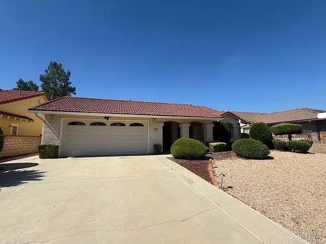 Located in a desirable 55+ community, this charming single-story home with Spanish style tile roof and low-maintenance desert landscaping. Features include an open floor plan, vaulted ceilings, tile and wood flooring, and a cozy fireplace. The kitchen offers granite countertops, breakfast bar, and plenty of cabinet space. Relax in the spacious backyard with covered patio and decorative fountain. Convenient two-car garage and excellent curb appeal - ready to move in and enjoy!