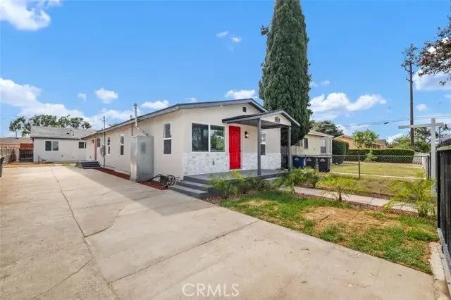 This stunning triplex offers a fantastic investment opportunity or multi-generational living in a quiet residential area of South Gate and 6 minutes from South Gate park. Featuring three unique units, all with modern updates and thoughtful renovations, this property is truly move-in ready. Front Unit: A charming, beautifully remodeled 830 sqft space with 2 bedrooms and 1 bath. This unit has undergone a complete transformation with ALL NEW-roof, flooring, bathroom, kitchen, hardware, quartz countertops, stucco paint, interior paint, electrical re-wire and 100 amp panel, landscaping in the front and side and much more. Junior ADU: This newly built 500 sqft unit offers 2 bedrooms and 1 bath, complete with fully paid solar panels. The contemporary kitchen boasts custom backsplash, new cabinetry, and a brand-new oven. Additional upgrades include a new electrical panel, recessed lighting, min split unit and high-quality finishes throughout. Detached ADU: This spacious, newly constructed 1,000 sqft unit features 4 bedrooms and 2 baths. It offers an open, modern design with high-end interior finishes and its own electrical panel for added convenience. All renovations and buildings are fully permitted, and two units come equipped with its own split A/C system for maximum comfort. There is parking space for 4 to 6 cars in the driveway. Whether you're looking to live in one unit and rent the others, or use the space for extended family, this triplex offers flexibility, style, and modern living all in one package. Don't miss out!