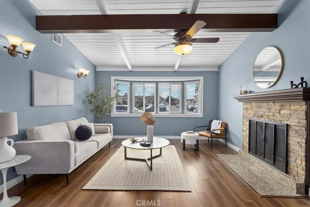 This charming remodeled residence features four spacious bedrooms, including two primary suites. The home boasts three well-appointed bathrooms and an updated kitchen with stainless steel appliances, granite countertops, and soft-close cabinets. This home is loaded with character featuring open-beamed ceilings and a stacked stone fireplace, complemented by wood floors throughout. The interior is bright and open. The backyard has a 120-square-foot storage shed, a grassy yard, a custom deck perfect for entertaining, and peach and tangerine trees. Additional highlights include air conditioning, copper plumbing, attic storage with a drop-down ladder, a two-car garage, and a large driveway accommodating multiple vehicles. Conveniently located just steps away from Cream Pan bakery, The Original Alfredo's Restaurant, Hoff's Hut, DuBunne Day Spa, Sur La Brea Park, and Wood Elementary School. Leave your car at home and enjoy the active South Bay lifestyle!
