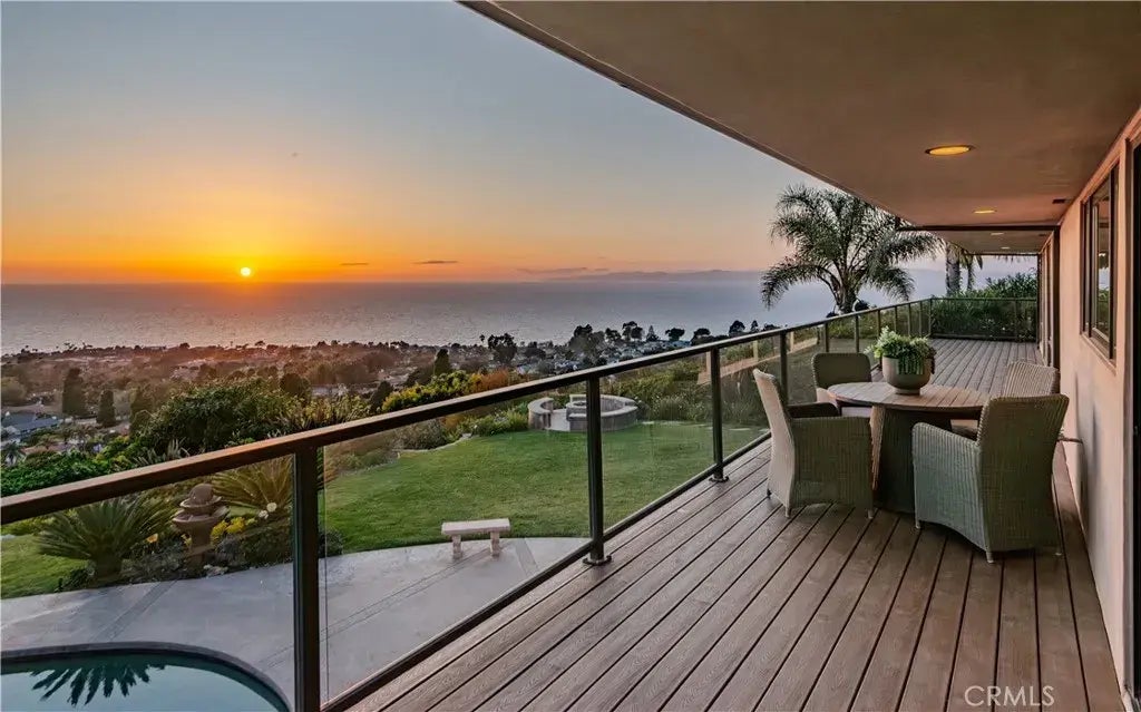 Breathtaking, panoramic ocean & sunset views from nearly every corner of this beautifully updated estate! This thoughtfully designed property has a great floor plan, accentuating the indoor-outdoor lifestyle, ideal for both relaxation and entertaining by the amazing pool, spa or fire pit. The entry level includes a spacious living room, formal dining room, family room, and a stunning, newly remodeled kitchen, seamlessly blending style and functionality. Outfitted with stainless steel appliances, custom cabinetry and sleek countertops, the new kitchen is a true showstopper. The entry level also includes a private office, (possible 5th bedroom) a three-car garage, and a full-width exterior deck that invites al fresco dining and sunset gatherings. Downstairs, the home offers a secondary family room and four additional bedrooms, including a luxurious primary suite with breathtaking views, a spa-like bathroom featuring a jacuzzi tub, sauna, dual vanities, and a spacious walk-in closet. The expansive backyard includes the sparkling pool & spa, built-in barbecue, huge lawn, fire pit, and unmatched views of the ocean and Palos Verdes bluffs. Meticulously maintained and recently upgraded, this home has been dialed in from top to bottomoffering the perfect blend of timeless elegance and modern luxury.