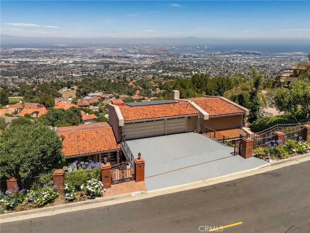 Perched majestically on the highest point of Miraleste Hills, this turnkey, move-in-ready estate is a serene sanctuary where elegance meets sophistication. Offering 4 expansive bedrooms and 6 updated bathrooms, this tri-level residence blends modern comfort with timeless designset against an unforgettable sweeping views from Downtown Los Angeles and the iconic harbor to the San Gabriel Mountains and the glimmering shores of Newport Beach.From the moment you step through the front door, you are greeted by a sense of calm and grandeur. Expansive windows invite natural light to cascade through the home, framing mesmerizing vistas in every directionsunlit mountains by day, twinkling city & LA port lights by night, and ever-changing scenes of ships arriving in port.Designed for both luxurious living and effortless convenience, the home features a sleek PVE pneumatic elevator connecting all three levels. The main floor showcases a refined formal living room, an elegant dining area, and a chef-inspired kitchen equipped with premium stainless steel appliances including a professional French door oven, gas cooktop, refrigerator, wine fridge, and under-counter drawer refrigerator. A cozy breakfast nook and tranquil master suite are perfectly positioned to capture the view.The lower level offers a spacious family room that opens to expansive wraparound balconies, where an extended terrace and jacuzzi create the perfect setting for entertaining or unwinding in style. Every bedroom is a private retreat with its own beautiful en-suite and generous closet, offering comfort, privacy, and s