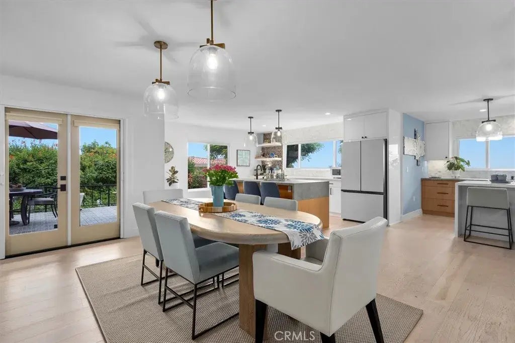A turnkey luxury townhome nestled in the desirable Rolling Hills Park Villas Community. This beautifully renovated 3-bedroom, 2.5-bath home showcases a comprehensive transformation completed in March 2024. The renovation artfully combines elevated design and thoughtful function, all just minutes from the coastline and surrounded by tranquil natural beauty. The fully reimagined open-concept main level offers seamless flow between the living, dining, and kitchen areas. At the heart of the home is a show-stopping chefs kitchen, featuring dual center islands with partial waterfall-edge finishes, Caesarstone Porcelain and Cambria Quartz countertops, custom two-tone cabinetry, and top-tier appliances. These include a 48 Kucht double-oven gas range with a custom hood, a built-in 30 microwave drawer, a dual-temperature beverage cooler, and a dedicated coffee bar with open shelving. Upstairs, the primary suite and additional bathrooms have been redesigned with high-end finishes, including custom vanities, elegant fixtures, designer tile, and luxurious walk-in showers. One of the secondary baths also features a deep soaking tub, creating a spa-like retreat at home. Throughout the property, no detail was overlooked. Notable upgrades include all-new cooper plumbing and electrical systems with modern lighting (recessed, pendant, under-cabinet, and exterior), a new garage sub-panel, and wide-plank Aspen Silver Cloud Hickory wood floors. Windows, doors, and hardware have all been replaced, including French doors with retractable screens and a newly added kitchen window to enhance ocean vi