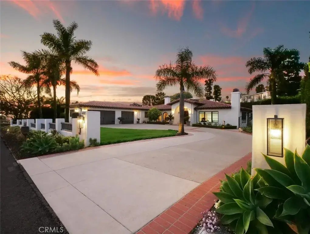 Welcome to this impeccably renovated Spanish Modern single-level home, where luxury, comfort, and design converge in perfect harmony. Situated in the prestigious Alta Vista neighborhood of Rancho Palos Verdes, this residence radiates the kind of sophistication youd expect to see in LUXE Magazine, with floor-to-ceiling Palladian windows framing breathtaking ocean and Catalina Island views from the living room. From the moment you arrive, youll be captivated by the commanding curb appealpalm-lined driveway, lush manicured landscaping, and a grand double-door entry that sets the tone for what lies within. Inside, soaring cathedral ceilings crowned by an expansive skylight bathe the open living spaces in natural light. The elegant dining room flows seamlessly into a showpiece chefs kitchen featuring Quartzite countertops, custom cabinetry, a walk-in pantry, and top-of-the-line Thermador appliances. Designed for effortless entertaining, the kitchen opens to a stylish family room with a statement fireplace, built-in shelving, and nearly 15-foot sliding glass doors that lead to a private backyard oasisperfect for al fresco dining and gatherings under the stars. The luxurious primary suite offers three custom walk-in closets and a spa-inspired bath. Four of the five bedrooms boast tastefully remodeled en-suite baths, ideal for guests, family, or multigenerational living. Every detail reflects quality craftsmanshipwide-plank tile and limestone flooring, Milgard windows and doors, and designer lighting add refinement throughout. Perfectly positioned for easy access on and off the Hil