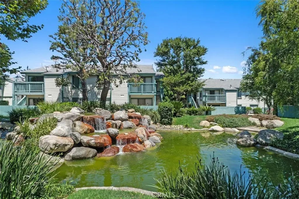 Welcome to the beautiful Ponderosa West gated community! This corner unit is in a peaceful and serene location with an updated kitchen, 2-bedrooms, 2-newly remodeled bathrooms with laundry inside the home. This light-filled home features high ceilings in the living room, creating a spacious and airy feel. The living room opens to a private balcony with a relaxing atmosphere perfect for enjoying your morning coffee or winding down in the evening. Vinyl flooring is installed throughout the unit, with recessed lighting featured in select areas, offering a modern, low-maintenance lifestyle. The primary suite is generously sized and features an en-suite bathroom and a good-sized walk-in closet, providing both comfort and functionality. The second bedroom also offers ample space, making it ideal for guests, an office, or a flexible work-from-home setup. This unit includes two reserved parking spaces and the community offers abundant guest parking throughout. This well-maintained complex features 2 swimming pools, 2 spas, and 3 peaceful streams surrounded by lush greenery, providing a relaxing environment for residents. The pet-friendly setting offers paths throughout the neighborhood for daily strolls and outdoor enjoyment. Whether you're looking for a tranquil retreat or a stylish space to call home, this condo has it all.
