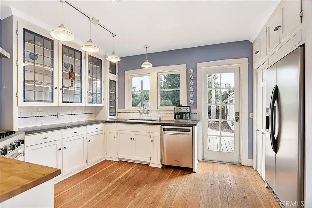 Welcome Home to your - Craftsman style home that you will find irresistible! The cute front porch, elegantly sloped roof-line and those oh-so-charming architectural details such as, wide overhanging eaves, exposed rafters under the eaves, a covered front porch, prominent tile front fireplace, built-in storage, nooks and window seats, natural materials, such as original wood flooring, double wood frame windows, which have separate panes of glass on the top and bottom. Upgraded kitchen includes, Viking stove, granite counter tops, stain glass cabinet doors provide sparkle to kitchen. Eat in kitchen area as well as separate dining area. Bedrooms offer natural lighting and closet organizers. Large outdoor patio expands width of house, area is perfect for outdoor entertaining. Side patio retreat area perfect for outdoor retreat space. Single car garage has been converted into workshop with private entry, all permitted. Workshop area offers front gated paver patio area, private bathroom with sump-pump and full kitchen, tank less water heater. Front yard landscaping is low maintenance. Backyard offers a clean slate your landscaping desires. Newer HVAC system installed 2017. Home is being sold as is. Garfield Ave is tree lined street, walking distance to public transportation. Outdoor Clipper Creak EV electric car charger installed on side of home near driveway. Home is a must see!