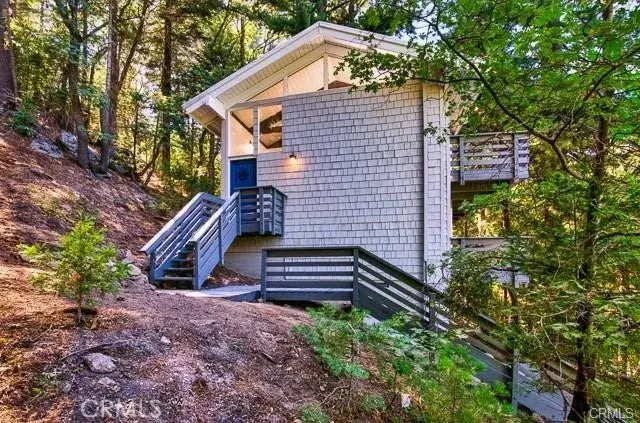 Welcome to HavenHaus where SECLUSION meets tranquility. Tucked away at the end of a private access road, with NO NEIGHBORS except the forest inhabitants, this remarkable retreat offers an unparalleled sense of PRIVACY, a place to unplug and exhale, a hidden gem nestled in nature's embrace. Step into your own sanctuary, as you enter, you'll be greeted by a split staircase. Go down to the 2 bedrooms or up to the open floor plan that seamlessly blends indoor and outdoor living, creating an enchanting ambiance reminiscent of a modern-day treehouse. Gather around the wood-burning fireplace in the spacious living area, where open beams highlight the vaulted ceilings adding a touch of rustic charm. Dual decks invite you to soak in the surrounding natural beauty, offering the perfect spot to unwind and connect with nature. The heart of the home boasts espresso shaker cabinets, granite countertops, and stainless steel appliances. Laminate flooring throughout ensures easy maintenance and a cohesive flow, while large windows frame picturesque views of the lush landscape. Rest easy in the two downstairs bedrooms, each featuring three-panel closets for ample storage. The utility room conveniently houses the water heater, furnace, and stackable washer/dryer, making household chores a breeze. Outside, discover your own slice of paradise, where peace and quiet reign supreme. Immerse yourself in the sights and sounds of nature, with squirrels, chipmunks, and stellar jays as your neighbors, and the occasional deer making a graceful appearance. And as a special treat, over 1,300 tulips and d
