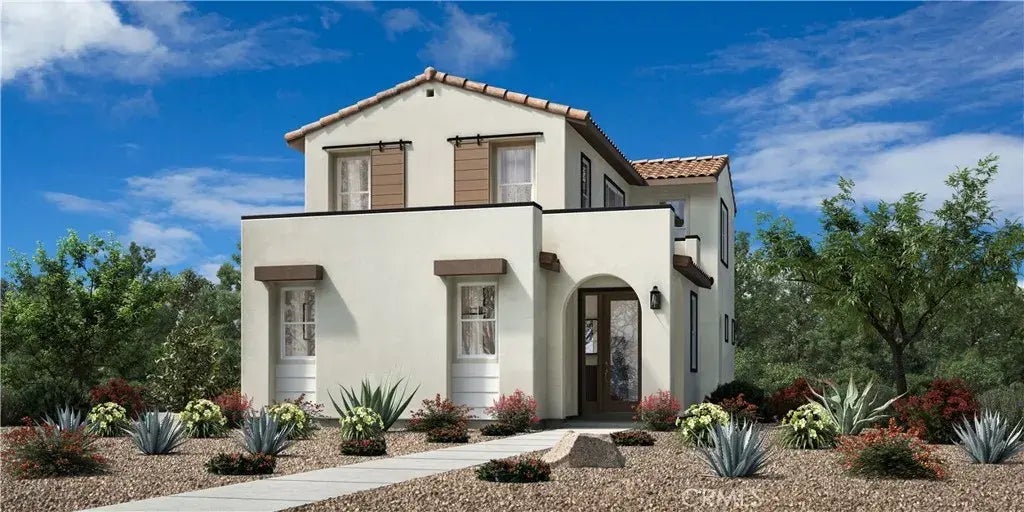 Welcome to Alara at University Park, a new community located in Palm Desert, which is close to world class restaurants and shopping. Homesite 46 is a new construction home that is situated near the new state of the art community center. The Asteria floorplan features 3 bedrooms, with 2.5 bathrooms, and is 1,896 sq. ft with a 2 car garage. Upon entering the home, you will take notice of the large open-concept great room and U-shaped kitchen which features plenty of counter space and natural light with a central waterfall island and stainless steel appliances. The primary bedroom is located upstairs with an upgraded ensuite bath with dual vanities and a large walk-in closet. The secondary bedrooms are adjacent to the central loft space upstairs with a shared bath. The side courtyard features room to entertain and relax with direct access from the great room through the upgraded stacking sliding door. A significant highlight of this home is the owned solar system from Sunpower. The neighborhood amenities include a new community center with pools, spa, fitness center, pickleball and bocce ball. Homesite 46 has an estimated closing date in November 2024. Photo provided is a rendering of the home that is under construction and exterior color schemes may vary.