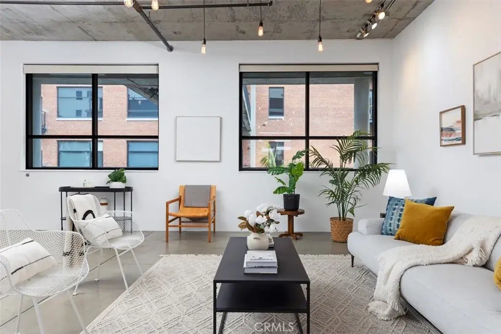 Welcome home to unit 424 in the Temple Lofts. Incredible east coast style loft in the historic and iconic Temple Lofts building. Central air conditioning and heat, open floorplan with polished concrete floors, soaring concrete ceilings with exposed ducting and floor to ceiling windows. Open concept kitchen with stainless steel Viking range and microwave, black granite countertops, breakfast bar and butcher block topped prep island. Private in-unit laundry area with storage. Enjoy sunny, south facing views of the downtown skyline from your private balcony and a spacious primary suite with en-suite bathroom and storage. The spacious bathroom features a dual vanity, a standing shower and shower over tub combination. The Temple Lofts is one of the most well- appointed loft buildings in Long Beach with secured parking, community fitness center, community BBQ area and spa, guest parking and community clubhouse. The unit comes with one assigned parking and private storage cage in the secured basement.