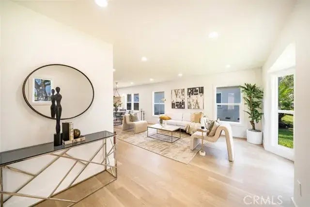 Welcome to your dream home in Baldwin Vista! This beautifully remodeled 3-bedroom, 2-bathroom residence boasts 1,668 square feet of living space on a generous 7,157 square foot lot. Situated on a beautiful tree-lined street, this home offers both charm and serenity. The detached 2-car garage with finished drywall, paint, and French doors to the backyard, along with a long driveway, provides both convenience and luxury. Inside, you'll find top-of-the-line KitchenAid appliances, Bedrosians porcelain countertops, and elegant West Elm light fixtures throughout the house. The kitchen features new slim shaker kitchen cabinets, RH kitchen cabinet hardware, and Delta faucets, adding a touch of sophistication. The home is adorned with recessed lighting and Museum Metropolitan rigid core vinyl plank flooring, providing a modern and stylish feel. The primary bedroom is spacious, complete with a walk-in closet and a luxurious primary bathroom featuring a standalone tub. This home has undergone extensive upgrades, including a new roof, garage door, vinyl windows, and an electrical panel upgrade. The new Mangaris decks and fully finished garage add both functionality and beauty. The front door is crafted from Rift white oak with a custom sidelight, while the exterior back door is made of mahogany. Additional upgrades include a new tankless water heater, HVAC system, and smooth stucco, all enhanced by Benjamin Moore black onyx exterior paint. Washer/dryer hookups have also been installed for added convenience. The exterior and landscaping have been meticulously designed, with new sod and