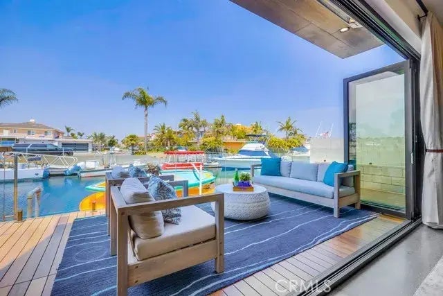 This stunning waterfront home on Sunset Island in Huntington Harbor was completed in 2019 and offers a unique opportunity to live on the water in a newer contemporary home in Huntington Harbor. The home was built for entertaining and offers a seamless transition between indoor and outdoor living spaces. The living room features 10ft. ceilings, recessed lighting, polished concrete floors, in-ceiling speakers, wet bar and floor-to-ceiling La Cantina sliders that lead to a beautiful deck made of Ipe wood and an approximately 20' private dock perfect for small watercraft such as a Duffy, kayaks, and SUPs. The outdoor space also offers in-ceiling heating, speakers, and an outdoor shower. The well-appointed kitchen is located on the second floor and includes Thermador appliances, quartz countertops, custom cabinetry, and a kitchen island. The second floor also consists of a guest room, a spa-like bathroom, and laundry as well as a den that can easily be modified to become the third bedroom. The third floor is dedicated to the primary suite with bedroom, bath, walk-in closet, and private patio. Additional features include European oak floors, dual-pane windows, standing-seam metal roof, tankless water heater, dual HVAC, bathrooms on each floor, Newport Brass plumbing fixtures, designer lighting, inside laundry hook-ups, wi-fi access points, security cameras, & drought-tolerant landscaping, as well as a 2-car garage w/epoxy floors & 2-car driveway parking. This is an amazing opportunity to live on a quiet canal in this breathtaking newer home with no HOA, your own water access, and