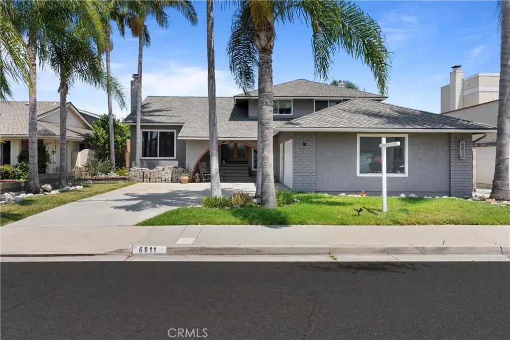 Welcome to 6811 Defiance Drive, noted by 10 beautiful palm trees, it is a stunning single-family residence nestled in the heart of Huntington Beach. This delightful home offers a perfect blend of comfort, style, and convenience, making it an ideal choice for families and individuals alike. The home boasts a generous living space with an open floor plan, allowing for seamless flow between the living room, dining area, and kitchen. The living room features large windows that flood the space with natural light, creating a warm and inviting atmosphere. The timeless kitchen is a chef's dream, equipped with stainless steel appliances, updated countertops, and ample, custom maple cabinets. Whether you're preparing a casual meal or entertaining guests, this kitchen has everything you need. Note the two fireplaces laced with Italian Carrera marble. With five well-sized bedrooms, every member of the family will have a cozy retreat at the end of the day. The master bedroom includes an en-suite bathroom for added privacy and convenience. All 3 bathrooms have been tastefully upgraded with quality fixtures and finishes, ensuring a luxurious experience. An upgraded electrical panel and 2, 220 outlets in the garage ensure power for 2 EVs. Situated in a desirable neighborhood, this home is conveniently located near top-rated schools, shopping centers, dining options, and recreational facilities. The beach is just a short drive away, offering endless opportunities for outdoor activities and relaxation. 6811 Defiance Drive is more than just a house; it's a place to call home. With its charmin