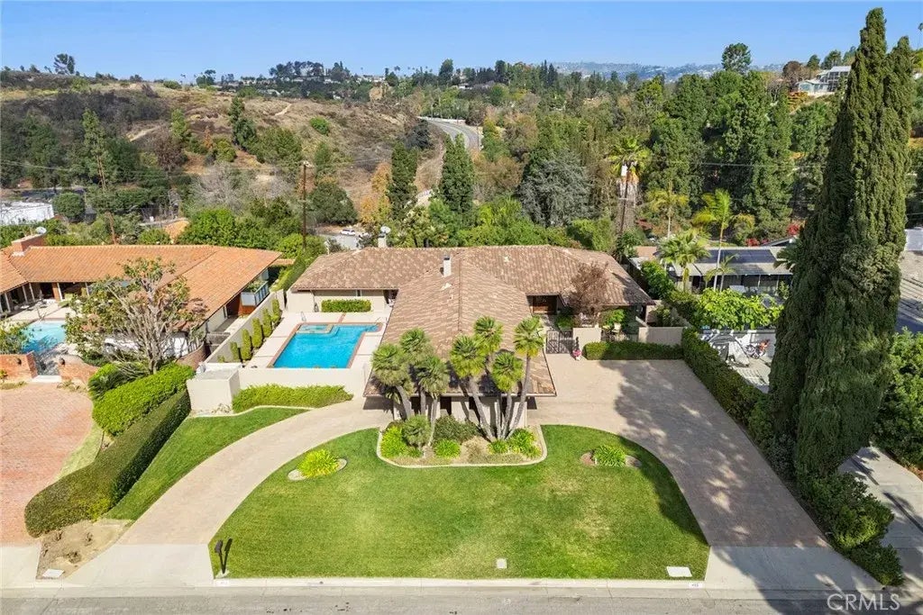 The wait for your dream home was worth it! Here is a rare opportunity to become a homeowner in one of the most desirable neighborhoods of Fullerton. Wide streets with large front yards evoke the charm of bygone days. This is the first time in almost 50 years that this home is being offered for sale. Like the previous owners, you can make this your "forever home." It is a single level home on a cul-de-sac street, nestled in the prestigious Sunny Hills Estates neighborhood. Sunny Hills Estates is an established area known for beautifully maintained homes on expansive lots. This home boasts a gracious lot size of 20,000 square feet. This Mediterranean-inspired sanctuary is very private and quiet, with no neighbors behind it. Instead, enjoy the wide open views of Coyote Hills. Exceptional curb appeal sets the tone with circular driveway and port cochere. A long driveway leads to the attached 2 car garage. Elegant pavers will lead your guests to a gated front courtyard. Substantial wood doors with leaded glass open to a lovely home with large picture windows throughout. These windows bring in lots of natural light and an invitation to an indoor/outdoor lifestyle. Views of the outdoors are part of the allure of this home. It has that breezy, sundrenched ease that makes your time at home feel like a vacation. Everything you want in a dream home is here: elegant living room with fireplace, large formal dining room, updated kitchen with breakfast nook, casual family room with built-in bar, and another fireplace with hearth seating, and an office/study for working remotely. The priva