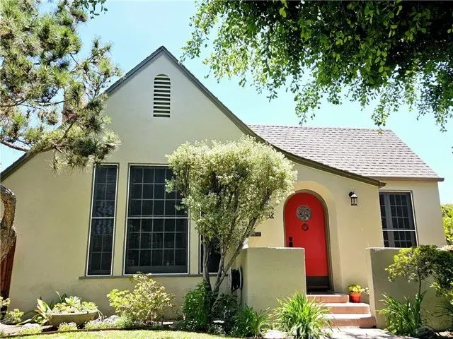 Discover the charm of this historic bungalow in Cal Heights, featuring a spacious chefs kitchen and numerous original period details. Enter through the distinctive rounded red door into a living room with a 15-foot barrel ceiling, a wood-burning period fireplace with an art deco grille, and original wood-framed windows. The formal dining room, adorned with original French doors and coved plaster ceilings, seamlessly connects to the living room and kitchen. The remodeled kitchen boasts a large chefs island, oak cabinetry, ample storage, and modern appliances, including a Viking 6-burner stove, a newer fridge, and a dishwasher. French doors in the kitchen open to an outdoor deck, perfect for entertaining. The kitchen is completed with a glass tile backsplash, Corian countertops, and stainless steel fixtures. All three bedrooms feature original oak hardwood floors, ceiling fans, and dual-pane windows. The first bedroom, currently used as an office, includes knotty pine cabinetry and a desk. The primary suite offers large closets, a seating area, and an en-suite bathroom with dual sinks, a rainfall showerhead, and a spa tub. A half bathroom with period details is located in the hallway near the first two bedrooms, along with a stand-alone shower room. The backyard is designed for relaxation and entertainment, with a patio, lawn, large chess set, and raised vegetable beds. The extra-large two-car garage size approx. 21' x 23', accessible via an alley, includes built-in storage cabinets and a laundry area with a washer and dryer. Above the garage, a loft/studio space size of appr