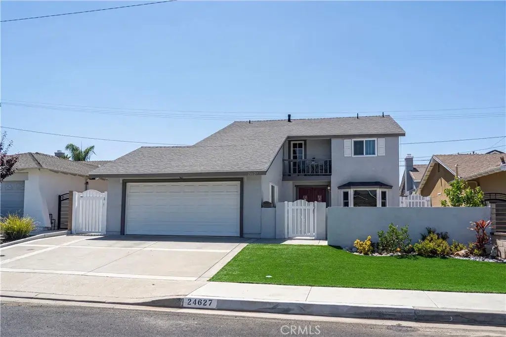 Introducing 24627 Marbella Avenue, a 5 bedroom, 3 bathroom home nestled in the desirable Carousel neighborhood of Carson. First time on the market in 55 years, this original mid-century home has been lovingly maintained and is ready for your creative touch! With 2,044 square feet of living space and sitting on a 5,198 square foot lot, this residence offers a classic floorplan with the perfect blend of convenience, comfort, and endless possibilities. You are greeted by a low maintenance front yard with artificial turf and complimentary plants. Through the vinyl gate, the expansive private courtyard takes morning coffee and relaxation to new heights. The spacious fireside living room and dining room effortlessly flow into the backyard, offering an unmatched indoor/outdoor lifestyle. The large backyard is an oasis, featuring beautiful grass, a raised rose garden, sprinkler system, and multiple entertaining spaces. The open concept kitchen boasts ample counter space and cabinetry, a breakfast bar, and a passthrough window and serving ledge for outdoor dining. The adjoining multipurpose den presents versatility, making it an ideal space for a game room, play room, Family Room, and more. The main level includes one bedroom and a half bath, while upstairs, you'll find 4 additional bedrooms, including the primary en-suite with a full bath, large closets, dressing area with vanity, and private balcony. Additional highlights include a two car garage with direct access and laundry area, a driveway with ample parking, newer windows, newer roof, newer gates, newer walkway, and newer con