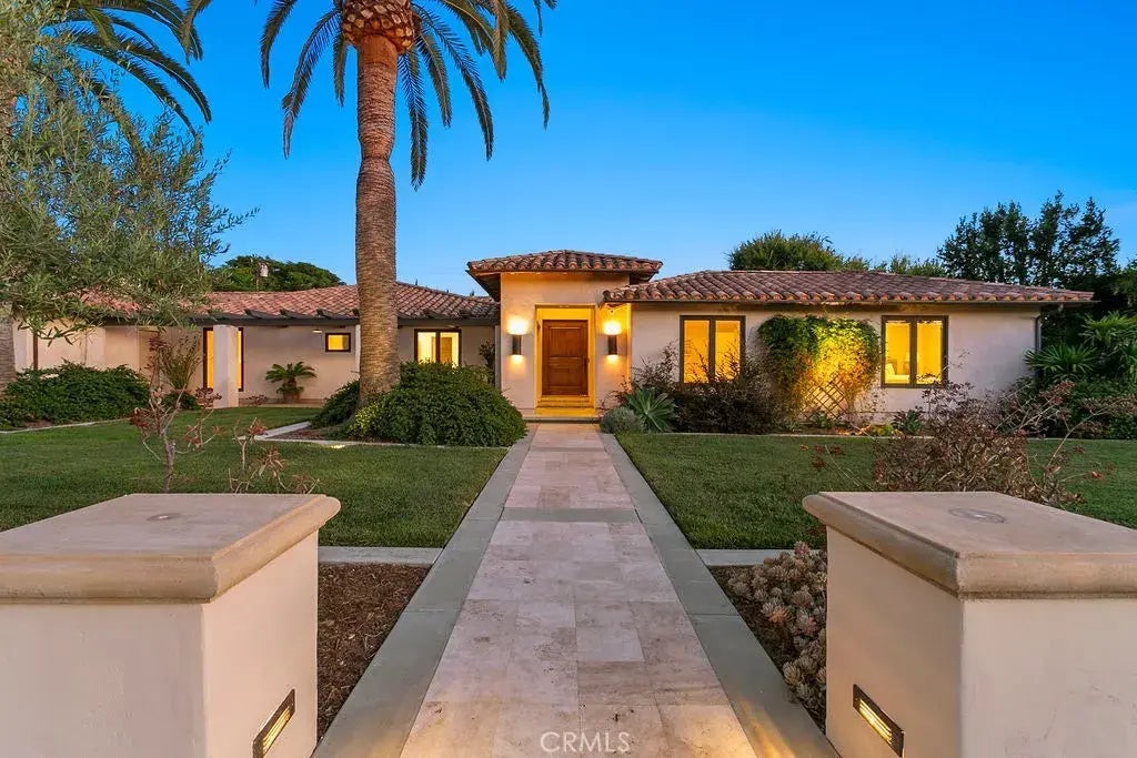 This immaculate, single story lux estate is a testament to Villa Park tradition and charm. Situated on a sprawling, rectangular shaped lot with unparalleled curb appeal, this Santa Barbara inspired dream leaves nothing to be desired. Mature palm and drought tolerant landscape is the perfect blend of elegance and function in Southern Californias conservation conscious climate. Enter through impressive counter balanced hardwood door into a floorplan loaded with open airy space and tons of natural light. Eng. hardwood floors, cathedral ceilings, skylights, exposed beams, and freestanding fireplace set the tone immediately upon entry. An expensive formal living room and dining room are laid out in an open concept which perfectly lends itself to entertaining and intimate family holidays. Culinary enthusiasts kitchen has it all, including custom island w/ built in range, custom cabinetry, two tone stone counters, SS appliances, cabinet paneled fridge/freezer, double oven, glass inlaid uppers, bar top seating, new custom splash, and tons of cabinets and buffet serving area. The kitchen is open to a spacious family room for a great room feel. Family room is open and expansive with soaring ceilings, built in Ent. wall, floor to ceiling stone finished fireplace, stunning wet bar w/ bar top seating, flat panel wall w/ hidden component closet, and double French door access to the lush resort style backyard. This layout puts the kitchen and family room in perfect harmony with a best-in-class backyard. A flex room located off the family room is perfect for a two-person office (current se