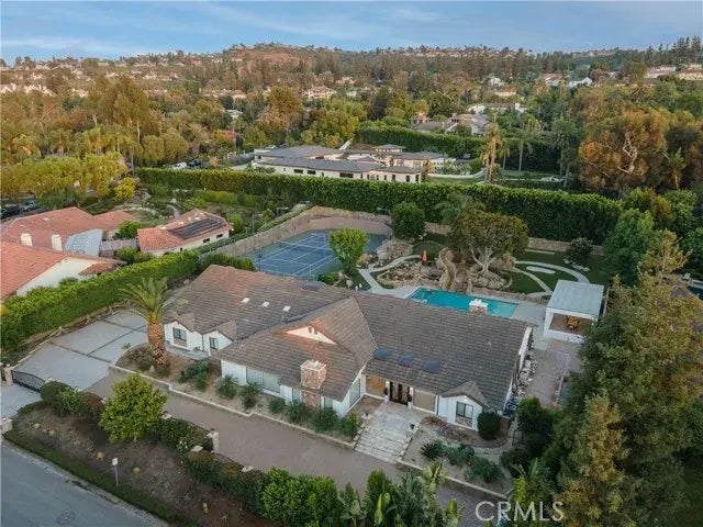 A magnificent single-story estate in prestigious Peralta Hills, well-known for its grand custom homes on acre-sized lots. Hard-to-find sprawling living space of 6000 SF, mostly on one level without any interior steps. Impressive grounds showcase resort-like amenities, including a saltwater pool with waterfalls and a water slide, a resurfaced tennis court with lights, a bocce court, putting greens, a gazebo, and a stage-like pavilion. An ultimate dream for those who love aqua activities: An endless pool for in-place swimming, fitness, therapy, and family fun! Two heating systems for the pools and spa. The heating system dedicated to the endless pool can heat up water to 80+ degree in 30-40 minutes. A switch control pool cover helps reduce the heat loss. The sweeping remodeled interior boasts a grand wrought iron double entry door, museum quality Chinese screens, soaring ceilings with multiple skylights, and a stunning fireplace with a sculptured marble surround. A chef's dream, the kitchen features a sub-zero refrigerator with wood finish, Wolf 6 burner cooktop and oven, 2 wine fridges, quartz countertops with beautiful marble backsplash, and a walk-in pantry. The expansive living room, formal dining room, family room, and game room cleverly divide the house into two wings. Separated from the secondary suite by a spacious hall on the east wing, the primary suite features a retreat, his and hers walk-in closets, and a luxurious bath. Imagine relaxing in the jacuzzi tub and refreshing in the walk-in shower/steam room after your busy work day! Two generously sized bedrooms on t