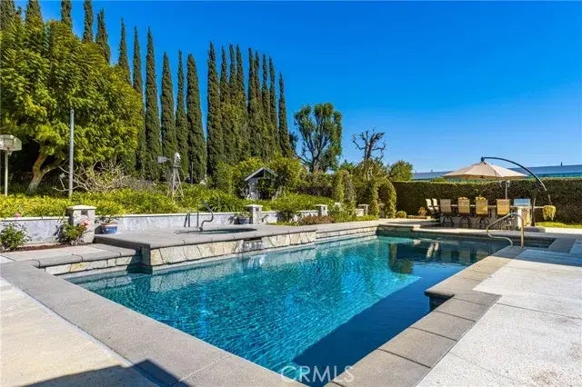We're back and better than ever! Come see our changes, fresh paint and a whole new fresh look! This home turned out gorgeous! Tucked inside beautiful Villa Park on a charming, quiet cul-de-sac street, this sprawling single-story ranch home offers everything you have been looking for! This lovely 4-bedroom pool home on a half-acre lot has been fully remodeled over the years and is truly special. Step into the gorgeous park-like backyard, with its sparkling pool, cozy covered patios, BBQ bar area, and a vast grass lot perfect for play and a sport court. The home's wide-open windows and French doors all showcase this gorgeous yard, seamlessly blending indoor and outdoor living and flooding every corner with natural light. Here, you'll enjoy much of your time relaxing or even hosting a party that can accommodate all your friends and family. Inside, the home's interior features cathedral ceilings, decorative beams, rich wood parquet flooring, and wood-framed windows throughout. The heart of the home is the stunning remodeled kitchen, featuring a large center island, two ovens, a 6-burner gas stovetop with a griddle, built-in microwave, and sink positioned to admire your yard. The adjacent casual eating area and breakfast bar with seating for two add to the convenience. The separate family room with a fireplace and ample seating can accommodate various activities. The spacious living room, first seen through meticulously crafted glass front door arches, has direct access to the kitchen and an adjacent dining area. Your primary bedroom retreat awaits, with two large walk-in closet