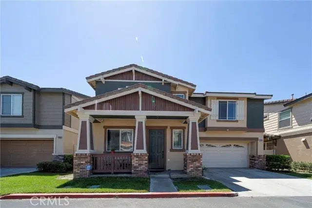 This delightful 1927 square foot single family home (PUD) has 4 bedrooms, and 2.5 bathrooms located in a small community, at the Anaheim's Magnolia Cottages. This warm and inviting home is located in between the cities of Fullerton and garden grove. Comfortable & modern two story; lots of windows make this property extremely light, bright and w/ an airy feeling. Nice tile entry, gorgeous laminate flooring throughout the home. Upscale living room with cozy fireplace AND crown molding. All four bedrooms are upstairs and the half bathroom downstairs. Spacious & beautiful kitchen with granite countertops, white cabinets, ceiling lighting and casual dining area. Sumptuous master suite with luxurious bathroom (dual sinks, oval tub & separate shower enclosure) and large walk-in closet. Central air/heat. Direct access to the 2-car garage plus 2-car space driveway and guest parking nearby. Nicely landscaped and very private including a generously sized backyard for perfect outdoor entertainment. Low Association dues (Association takes care of the front yard & trash). Conveniently located within close driving distance to shop, dine, and amusement parks.