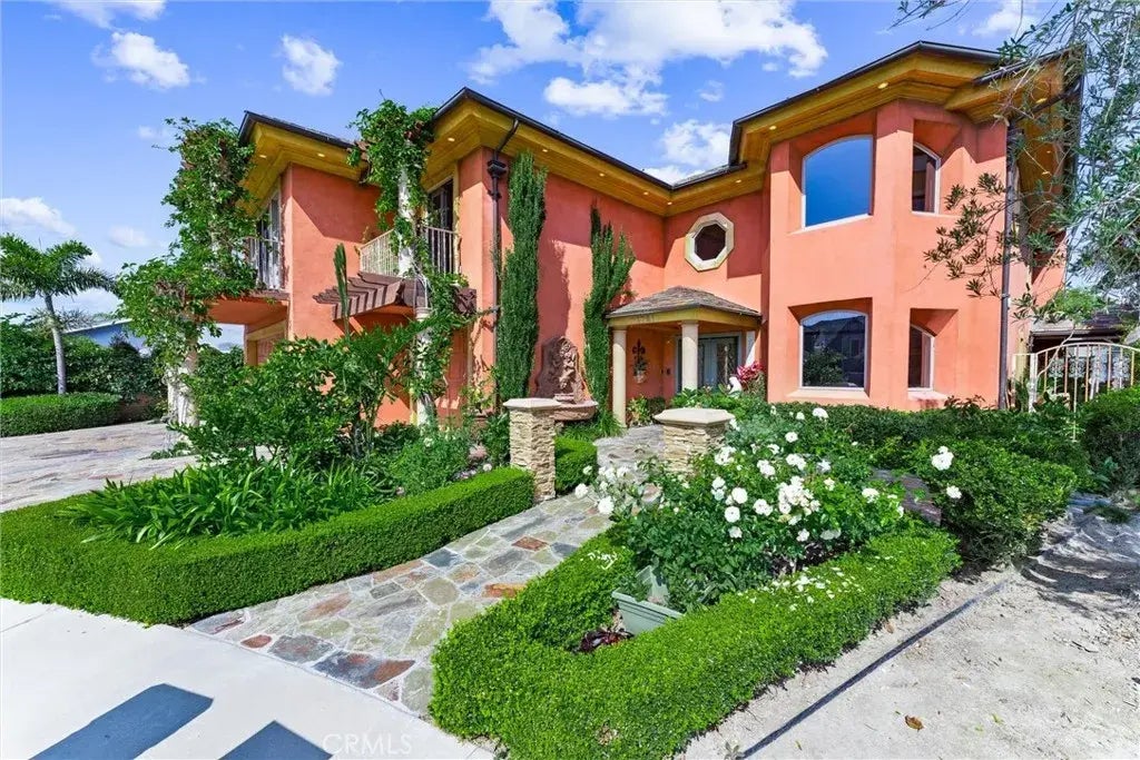 Introducing a stunning waterfront property in the picturesque enclave of Huntington Harbor's desirable Trinidad Island, located on a quiet cul-de-sac. Boasting 4706 square feet of living space, this meticulously designed home offers the perfect blend of modern elegance and classic coastal charm. Upon entering, you'll be greeted by a grand foyer adjacent to the living room featuring a 2-story high ceiling. Architectural style coffered ceiling in the spacious formal dining room delivers character and texture. The open concept design seamlessly connects the family room with fireplace, casual eating area and newer gourmet chef's kitchen, equipped with top-of-the line appliances and fixtures, custom cabinetry, quartzite counters with designer lighting behind backsplash, butler's pantry and a spacious island for culinary enthusiasts. This expansive area has French doors and garden window to enjoy panoramic views of the harbor. Step outside to a spacious patio with stone decking, built in BBQ, fire pit, bar area, perfect for al fresco dining and entertaining, all overlooking the canals and private 40' boat dock. The home features 4 generous bedrooms, 3 en-suite bedrooms upstairs, 1 bedroom downstairs. The primary suite is a true retreat, with a private water viewing balcony, spa like bathroom and huge walk-in closet. Media room w/tiered seating, floor to ceiling screen, gaming area and balcony. Downstairs 4th bedroom. ELEVATOR, 3 car extra deep finished garage with 2 tesla fast charging outlets, brand new 75 Gal water heater with circulating pump, and, of course, an electric doggi