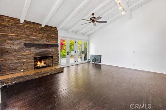 This stunning home, recently renovated, features a bright and open floor plan with vaulted wood beam ceilings, creating a sunny and welcoming atmosphere throughout. The abundance of natural light is accentuated by floor-to-ceiling windows and double French glass doors. Fans in every room ensure comfort and ventilation. The living area showcases a beautiful stone fireplace and seamlessly leads to a large private patio, perfect for indoor-outdoor living. The Zen backyard is a tranquil retreat with a fountain, covered area, and immediate access to a green beltideal for entertaining guests. The kitchen is a chef's dream with granite countertops, custom white tile backsplash, white custom cabinetry, convection oven, microwave, warming drawer, brand new refrigerator and stove, chef-grade disposal, and a breakfast bar for additional seating. Additionally, the garage boasts a large brand-new freezer, enhancing food prep and storage options. The master bedroom offers direct access to the private patio and a spacious bathroom with extra vanity space. There is ample storage space throughout the home, including organized closets in every room. Gardens situated off of each room further enhance the overall appeal. Enjoy the new finishes such as the brand new mantle, new sliding bathroom door, and new lights and mirrors throughout. The property includes a brand-new washer and dryer, adding convenience to daily living. The 2-car garage provides secure parking, and brand-new washer and dryer. Situated on a cul-de-sac with quick access to Vista Del Oro, the location is perfect for residents