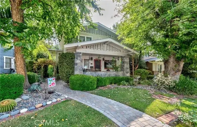 Discover timeless charm in this beautifully remodeled Craftsman and Victorian-style home, nestled in the prestigious Historic District of Whittier. With stunning curb appeal, the property features elegant cobblestone-style pavers, striking stone accents, and lush, manicured landscaping. The inviting front porch welcomes you to a spacious interior offering 4 bedrooms, 2.5 baths, and approximately 2,380 square feet of living space on a generous 6,881 square foot lot. Step inside to find a bright and airy living room with large picture frame windows that flow seamlessly into the formal dining area, complete with a stunning light fixture. This open layout is perfect for hosting gatherings. The brand-new, elegantly remodeled kitchen boasts quartz countertops, custom cabinets, a built-in range and oven, a dishwasher, and a central island with a butcher block countertop and utility sink. Ample cabinet space and beautiful floating shelves complete this culinary haven. Convenience is key with a main-level bedroom, a half bath, and a laundry room. Upstairs, the primary suite offers a bonus sitting room, a linen closet, and an oversized hallway bath. Two additional generously sized bedrooms share a newly remodeled hallway bath featuring a designer soaking tub. The backyard is an entertainers dream with a large, covered patio and a private deck, ideal for hosting family and friends. The serene atmosphere is enhanced by lush greenery, providing privacy and tranquility. A detached 2-car garage with a charming barnyard door adds to the property's appeal. Additional highlights include base