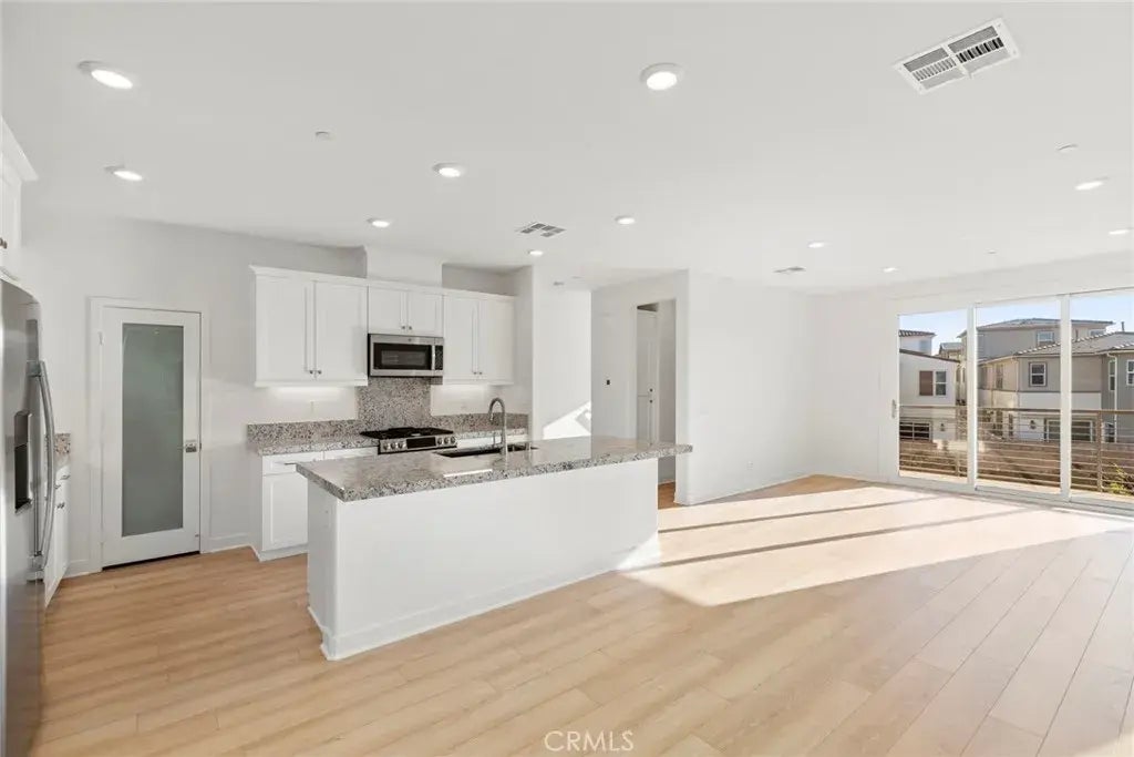 Welcome to the Arieta Residence 3, a stunning three-story home and the largest floor plan offered in this exclusive collection. This end unit, bathed in natural light, epitomizes modern living with its open-concept design and thoughtfully planned spaces. This home features three bedrooms and three bathrooms, with one bedroom and bath conveniently located on the main floor. The second level is designed for seamless living and entertaining, offering a spacious living area, a gourmet kitchen equipped with a refrigerator/freezer, stovetop, dishwasher, microwave, and oven, an outside deck perfect for enjoying fresh air and outdoor dining, a pantry for all your storage needs, and an additional bathroom. The third floor houses two well-appointed bedrooms and a full bathroom. The property includes a direct access two-car garage, providing both convenience and security. Situated in the desirable Serrano Heights community, residents can enjoy a resort-style swimming pool, BBQ areas ideal for summer gatherings, a playground and tot lot for children, beautiful park spaces, and a basketball court for active recreation. Additionally, the unit comes with a washer and dryer. Don't miss the opportunity to call this beautiful Arieta Residence 3 your new home, where exceptional amenities and a welcoming neighborhood atmosphere await.