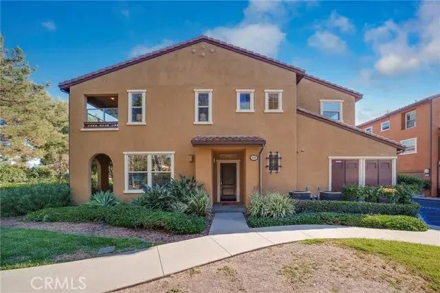 * Premium End-unit * located in the sought-after village of Portola Springs in Irvine. This charming beautiful home has lots nature light and only one wall shared with neighbor. Fresh NEW interior paint. Impeccably maintained and elegantly upgraded throughout, the home features hardwood flooring, plush carpeting, a custom-built bookcase, and designer light fixtures. The gourmet kitchen has been thoughtfully updated with granite countertops, stainless appliances, a large center island, ample cabinet space, and recessed lighting. The dining area seamlessly opens to a covered patio, offering serene views of lush landscaping. The spacious master suite boasts a walk-in closet and a private deck, perfect for unwinding at the end of the day. Upstairs also includes 2 bedrooms, hallway bathroom and laundry space with cabinet. The 2-car attached garage has extra storage shelves. Conveniently located with walking distance to Portola Spring Elementary. Nearby shopping, dining, and entertainment. This home is also within the highly acclaimed Portola High School. Enjoy the community amenities include pool, spa, sport courts, BBQ, playgrounds, and parks.