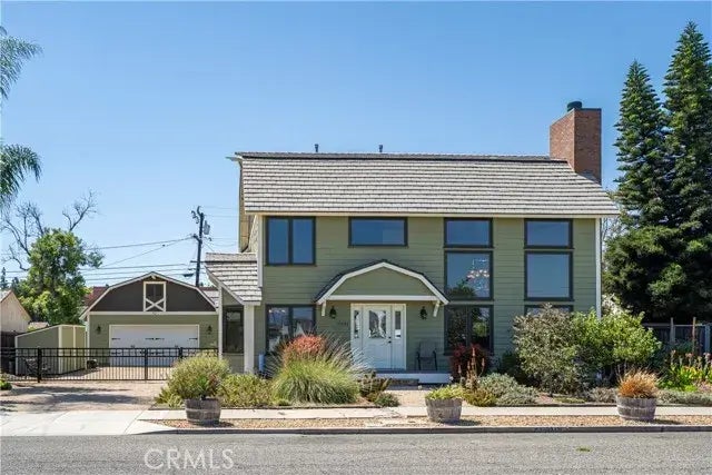 Welcome to 12641 Pine Street! This stunning, suburban Farmhouse is situated on a picturesque and architecturally diverse cul-de-sac. Erected in 2008, this 2,500 sq.ft. abode includes 4 bedrooms, 3 bathrooms and features a meticulous design aesthetic with unique features such as breathtaking, double height ceilings with oversized Sierra Pacific wood windows. The open concept of this rare home offers seamless flow to 3 living spaces with 2 fireplaces, making it a beautiful backdrop for entertaining. A dreamy, chefs kitchen awaits featuring custom wood cabinetry, granite countertops with ample space for culinary crafting, a large center island and a proper pantry. This space is also equipped with tankless water heater, energy efficient appliances, a new double oven and Franke dual sink with a garden window, the perfect spot for growing your own herbs right in your kitchen! Theres timeless Hickory wood floors throughout the home, custom closets and built-ins included. Approximately 800 Sq.Ft., the super sized separate garage has its own electric panel, water and stand-in attic storage under a beautiful Gambrel roof. Live an Orchard lifestyle & make small-batch jams from the blackberry vine or any of the variety of fruit trees including: pomegranate, peach, cherry, orange, apple, lemon & avocado. This backyard sanctuary features an enclosed pond, sustainable rain barrel replenishing system and five custom storage units. The home is located adjacent to award winning schools and is a quick jaunt from iconic Garden Grove landmarks, including: Historic Main Street, Gem Theater, the