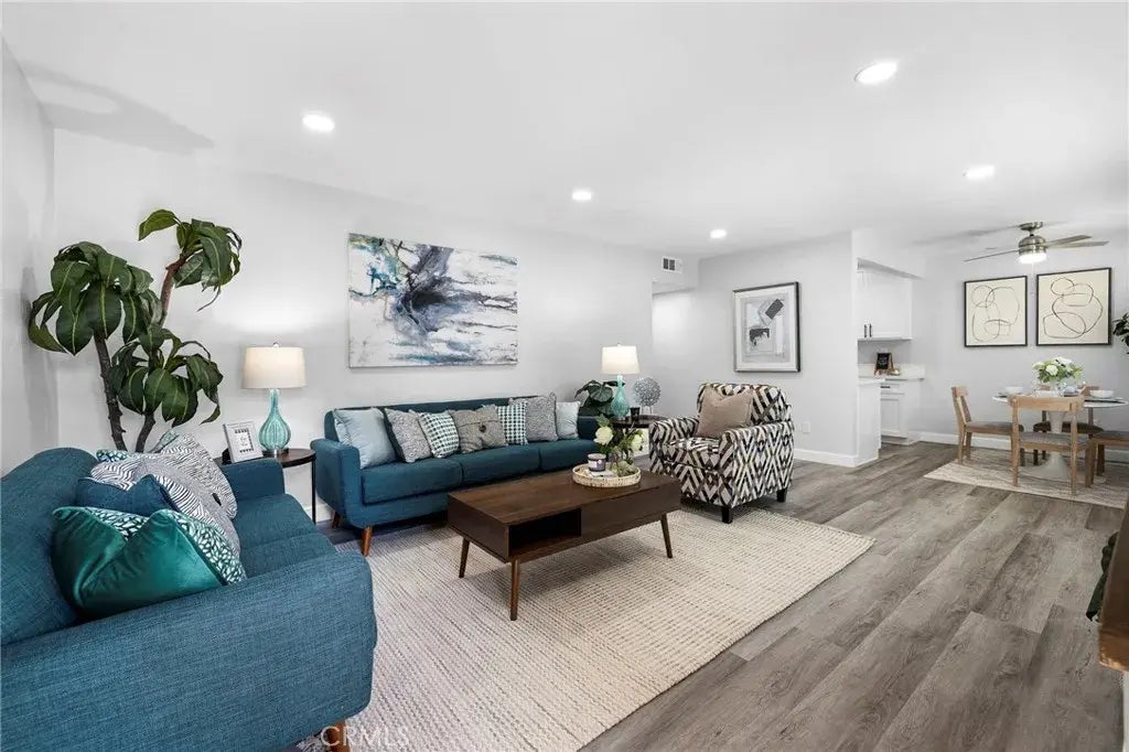 Located in the "Creekside Village gated community". Move in ready, Charming ground single story, Central A/C and Heat & Double pane windows. 2 bedroom / 1 bathroom with well maintained the private outdoor patio. 2 Parking spaces are available. HOA fees covered by the Gas+Water+Trash+Pools+BBQ. Brand new & fully remodeled and upgrades include fresh paint throughout, New water proof laminated flooring throughout, new & modern style bathroom, recessed lights throughout, ceiling fan, new kitchen with white shaker cabinets, new stainless appliances include refrigerator, new custom blinds and much more. Set apart from neighboring complexes by it's comprehensive security features, this community is fully enclosed with fencing and requires key or gate opener access, offering peace of mind and privacy. Additionally, the included carport comes with storage space, enhancing convenience and functionality. Enjoy the convenience of being just a short stroll away from entertainment, parks, shopping, and dining options, grocery markets, banks, Target, fast foods, fine dining and much more ... The HOA includes water, trash and gas, refreshing pool, communal BBQ area, and covered shaded seating areas. This property won't last long!!!