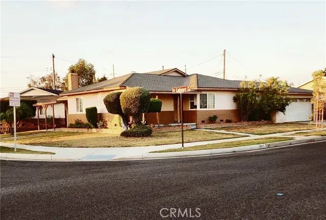 nice corner lot in a great La Mirada neighborhood; dual pane windows;large remodelled kitchen withh granite counter top; very nice flooring at 2-car garage parking;
