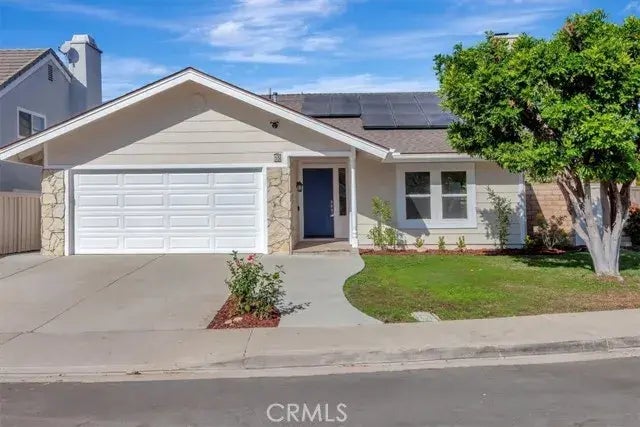 DARLING one-level single family home - FRESH, CLEAN, even Epoxy-COATED GARAGE FLOOR - 3 bedrooms, 2 baths - very nicely upgraded - LIGHT, BRIGHT - recessed lighting everywhere! Newer flooring, upgraded baseboards, newer kitchen, 5-burner gas cook top, microwave and wall oven, refrigerator included, family room in country kitchen with breakfast nook plus has an eat-up island bar with quartz countertops - SOLAR - SAVES $$$ - vaulted ceilings living and dining rooms, kitchen - upgraded bathrooms - hall has shower over tub, primary bathroom has separate relaxing tub and separate walk-in shower. Freshly painted exterior home - Huge lush yard - sail-covered patio - interior to tract location (does not back to any street) - driveway - cul de sac location as well - THIS IS A GREAT HOME!