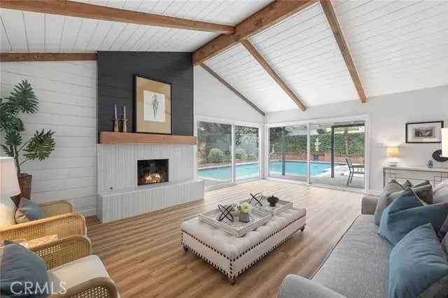 Simply stunning Diamond Bar Pool Home! Located in a tranquil neighborhood, nestled in a private Cul-de-sac. Enter into a charming double door foyer, you'll immediately be drawn to the home's fantastic Open Floor plan, allowing a smooth transition from room to room. Featuring 3 bedrooms and 2 baths, completely remodeled, from the kitchen to the bathrooms, the ceiling down to the floor - No stone was left unturned! What makes this home even more special is the Family Room, boasting of tall, beamed ceilings and an elegant fireplace. Relax and enjoy the view from the room, with large windows and sliding glass doors showing off the gorgeous pool. The kitchen is a highlight, featuring a remodel that includes new Oak wood finish, self-closing cabinets, kitchen island with waterfall quartz countertops, and brand new stainless-steel appliances. The bathrooms have brand new vanities, newlyl tiled floors and shower, all new lighting and hardware. All the bedrooms are generously sized, with the Primary bedroom being a true retreat. Featuring a board and batten designed wall, fully remodeled ensuite bathroom with a walk-in shower. Additional features include brand new dual-pane windows and sliding doors, Central Air and Heat, large 2-car garage with washer/dryer hookups plus a wide driveway that can fit 3 to 4 cars. This home's backyard is a true oasis. Imagine sitting here at the end of the day, enjoying the view, a dip in the pool or entertain friends al fresco! The wrap around backyard provides several cozy places to relax and enjoy the view. Goes to highly ranked schools, close to s