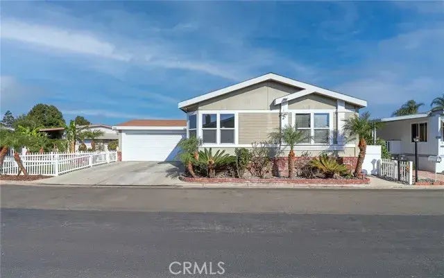 This turnkey, corner lot home is centrally located in the highly sought after "All Age Community" of 'Fernwood Mobile Home Park', a mile from Knotts Berry Farm in central O.C. This spacious home is 1,568 Sq Ft! complete with cathedral ceilings throughout with barnwood covered skylights, accent walls & real-Brick skirting! This upscale 3 bedroom/2 bath home boasts a beautiful layout starting with the "Great-room" upon entry, featuring an updated open kitchen, dining room & huge living room! Kitchen has beautiful faux marble countertops, perfect for entertaining. Step outside into your private Zen-like patio with plumeria-covered newer waterfall feature. Home features 6 ft. perimeter vinyl privacy fencing, picket-fenced front/side yard. This home has a *two-car attached garage w/remote door and (2-car driveway parking), 10 cam. security system- all newer LED recessed lighting, w/dimmers. Warm "barnwood accent walls" with wood-covered center beam & trim give this home that cozy cabin-like feel! Other amenities, a barnwood-themed remodeled guest bathroom, with all-newer fixtures, lighting, & cabinets! Home comes with newer built-in microwave/oven, 4-door s/steel LG refrigerator, newer 4 burner s/steel stove/oven (all gas!),(can discuss newer washer/dryer), newer dark-brown colored custom vinyl blinds, outdoor motion detector/cams. & front yard sewer cleanout for RV blackwater, also 2-sets of "hot/cold" hose bibs in front & patio, automatic sprinklers, newer vinyl/wood flooring thru-out entire home, 2-dog doors/laundry/garage/patio, & perimeter concrete dog-run! Residents can en