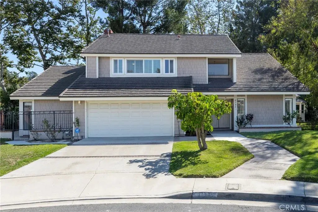 THIS HOME IS A BEAUTIFUL MAIN HOUSE, PLUS A SEPARATE 595 SQ. FT. GUEST QUARTERS! The main house has 3 bedrooms, 2.5 bathrooms, plus a loft with a balcony that overlooks the backyard. The GUEST QUARTERS is 1 bedroom, 1 full bath and a large living space. The kitchen is open to the family room with beautiful cheery wood cabinets, granite counters, and stainless appliances. The backyard has so much usable space with a large concrete patio, a built in gas BBQ with a side burner, a lovely gazebo, fire pit, fountain, several fruit trees and roses. This house sits at the end of a cul de sac, in a quiet neighborhood and has crown moldings, rain gutters, a laundry chute, new interior paint (including the garage), new carpet installed in both the main house and the guest quarters and recessed lighting throughout. Award winning schools and close to shopping and freeways.