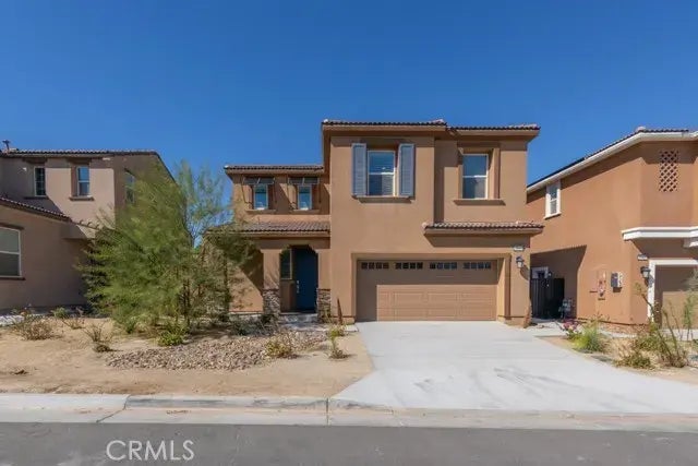 Welcome to the gated Dolce Community in the City of Palm Desert. This 3 bedroom 2.5 bathroom home comes complete with all stainless steel kitchen appliances, walk-in pantry, beautiful white cabinetry with granite counter tops and even a downstairs bathroom. Upstairs boasts the primary bedroom, 2 guest bedrooms, 2 more bathrooms, a linen closet and a loft for extra space. The laundry room up stairs makes doing laundry a breeze. Inside the 2-car garage you will even notice the tankless water heater. Enjoy the central air conditioning throughout the house knowing that you have solar panels that are paid in full. No lease to takeover! When you want to enjoy the outdoors you can do so with your covered patio and low maintenance backyard. Or you can hop in the community pool or spa. This little gem was built in 2023 so everything is practically brand new! The open floor plan makes entertaining effortless. The refrigerator, washer and dryer are ALL included to make this an easy move! Low HOA's. Close to the 10 freeway and in close proximity to loads of shopping areas.