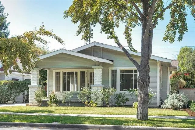Set on a quaint, tree-lined street within Fullertons original townsite, 229 N. Cornell Avenue is part of the citys College Park Historic District. The neighborhood is culturally and architecturally significant, reflective of the Fullertons growth in the early 20th century. This 1923 Craftsman bungalows gracious and welcoming front porch ushers you into the homes main living area with kitchen and laundry room just beyond; wood floors and fresh paint create a calm, restful environment. Glass-front built-in cabinets and a chandelier are ready to help you create a more formal dining area, a contrast to the cozy breakfast nook around the corner. With windows that look out over the lush yard and its mature landscaping, the simple yet efficient kitchen enjoys the essentials, along with more cabinetry and details that are true hallmarks of Craftsman design: simplicity, functionality, and craftsmanship. Off the living area, a hall leads to two bedrooms and a full bathroom. The front bedroom is bathed in light, thanks to large windows which look out over the flowerbeds and lawn, while the second bedroom enjoys views of the rear yard and its abundant, fragrant lavender. Along with other period homes in the area, this Mills Act-eligible residence blends architectural beauty with the citys strong sense of community and academic influence. Its numerous original details and woodwork, long driveway leading to a detached garage, and picturesque, walkable charm make 229 N. Cornell a true gem with a rich history.