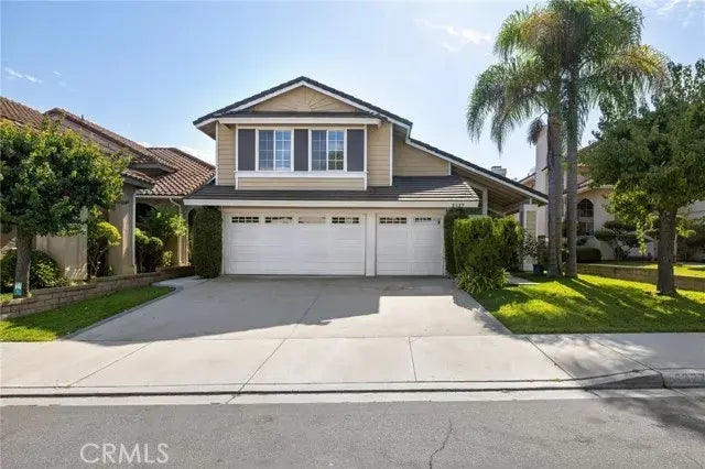 This stunning 5-bedroom, 3-bathroom home is located in the highly sought-after Chino Hills community, just steps away from the top-rated Country Springs Elementary School (9/10 on GreatSchools.org). Set on a quiet, tree-lined street, this beautifully maintained residence offers over 2,700 sq. ft. of living space and sits on a generous 5,772 sq. ft. lot, perfect for relaxation and entertaining. Upon entering, you're greeted by an expansive, open-concept living space with soaring ceilings and an abundance of natural light. The elegant staircase, with warm wood accents and white railings, creates a sophisticated first impression, while a skylight above floods the entryway with soft sunlight. The spacious living room seamlessly flows into the dining area, where large, arched windows provide picturesque views of the outdoors. The open-concept design continues into the remodeled kitchen, featuring sleek quartz countertops, Bosch stainless steel appliances, and modern flat-panel cabinetry that adds a designer touch. The adjoining family room offers a comfortable, connected space for entertaining, with direct access to the spacious backyardideal for gatherings or simply enjoying the California sunshine. A versatile downstairs room serves as either a guest bedroom or home office, making it a perfect flex space to suit your needs.Upstairs, the primary suite serves as a luxurious retreat, complete with a private balcony that offers breathtaking mountain views. The remodeled en-suite bathroom boasts custom walk-in closets, floating dual vanities, a soaking tub, and a separate shower fo