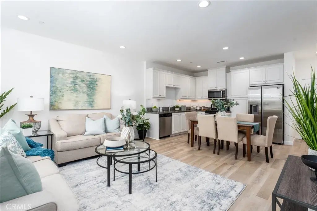 Welcome to 3561 E Moonlight; where modern design, practical functionality, and refined luxury converge. Nestled in one of California's top master-planned communities - Canvas Park of New Haven, this exceptional 3-bedroom, 2.5-bathroom home offers a perfect balance of elegance, convenience, and affordability. The open-concept floor plan invites seamless flow between the living, dining, and kitchen areas, enhancing the sense of space and light. Beautifully remodeled with upgraded LVP vinyl flooring ensures a blend of durability and sophisticated design. All accompanied by large windows, 9' ceilings throughout, creating an inviting atmosphere with just the right amount of natural light. The upper level features three generously sized bedrooms, two bathrooms, and laundry room, highlighted by the light-filled primary suite with a large walk-in closet and dual vanity sinks. A freshly finished two car attached garage provides, two additional spaces on driveway (TOTAL OF 4 PARKING SPACES), and guest parking provides you with ample parking for you and your guests. Set in Californias premier master-planned community, Canvas Park, residents enjoy access to a wide range of amenitiesparks, dog parks, pickleball courts, a recreation center, fire pits, pools, and a childrens splash padmaking it the ideal blend of luxury and practicality. The location offers easy access to nearby shopping, dining, and breweries, with convenient entry to the 15 Freeway, ensuring that both work and leisure are within reach. This property offers the perfect combination of elegance, practicality, and affordabi