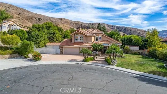 Welcome to this wonderful pool home in the Belcanto tract of Bryant Ranch! Tucked away on it's premium lot of approximately 14,300 square feet (nearly a third of an acre), the property encompasses over half of the cul-de-sac. It features great curb appeal including an expansive front yard with mature landscaping, beautiful hardscaping, and a wonderful, covered courtyard leading to the front entry. There's a gated RV parking area with a shed for storage and workshop, and even a mini basketball court area...all in the front yard! The attached, direct access 3-car garage and deep driveway can easily accommodate parking for 6 cars. Inside, you'll find a bright, open floor plan with four bedrooms and three baths (one bedroom and one 3/4 bath downstairs), a sunny kitchen that is open to the family room with fireplace, large living room with vaulted ceilings and attached formal dining area. Gorgeous bamboo flooring throughout downstairs. Upstairs features include a double-door entry primary bedroom and en suite bath with deep, soaking tub, separate shower, double-sink vanity, and walk-in closet. There are two secondary bedrooms with custom built-ins and walk-in closets. Upstairs secondary bath has a single-sink vanity and shower over tub combination. Carpeted stairway has been upgraded with on-trend wrought iron and wooden railing. Upper bedrooms and halls are carpeted. Designer interior paint. Custom, beveled glass dual-pane windows throughout. Completely re-plumbed with PEX piping. Backyard is built with entertainment in mind, and features a gorgeous pebble-textured pool and spa