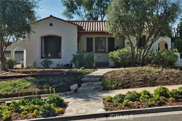Welcome to 629 Wesley Drive, a charming Mission-style bungalow with classic Spanish architectural details. Set on the perimeter of the Muckenthaler Cultural Center, a former mansion which enjoys its rightful place on the National Register of Historic Places, the Wesley Drive residence has a front porch with views of the center's expansive, park-like grounds, and is just minutes from retail, dining, and entertainment. Upon entering the home, the main living area features a fireplace, beautiful wood beam ceilings, and wood floors; white walls and many windows add a feeling of airiness to the living space. Classic elements such as arched windows, doors, alcoves, and niches are throughout, and speak to the home's enduring craftsmanship. Two bedrooms are off a central hallway, as is the full bathroom. The kitchen flows into a light and bright breakfast nook, while the opposite end leads to the side door; step out onto the paver driveway to make your way to the detached garage and ample rear yard, complete with fruit trees. Laundry connections are available inside the garage, which also houses an additional bathroom -- great for cleaning up after a day of gardening or working on other projects outdoors. 629 Wesley Drive feels like an escape in the middle of Orange County, and its 1929 charm is still in effect nearly 100 years later.