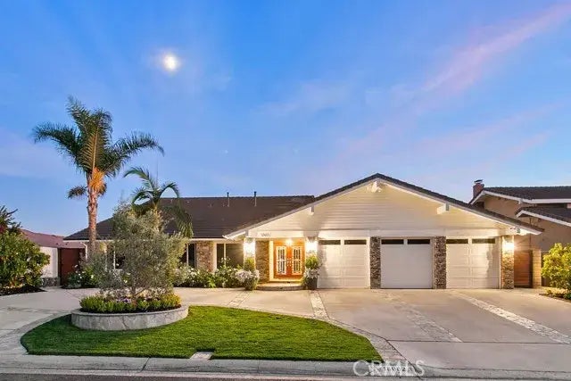 This wonderful designer home will stop you in your tracks. Just bring your clothes and toothbrushes! A truly stunning family home with no detail overlooked, from the huge open plan chefs kitchen and family room which has a dramatic split rock fireplace wall, to the cozy outdoor fireplace, sparkling pool, spa and entertaining area. Something for everyone here. Two Primary bedrooms, one totally secluded upstairs with attached office, just remodeled with spacious closets and huge shower, the other primary suite is down with French doors opening to luxurious back yard overlooking sparkling pool and spa. From the circular driveway and amazing curb appeal, enter through an elegant double glass/wrought iron entry doors to a WOW light and bright view of family room, kitchen, bar area and fireplaces flooded by natural light through dual pane windows throughout. The kitchen has spacious central island with breakfast bar for the family and guests. All the bells and whistles with newer stainless appliances and double French doors to outdoor patio with multiple double French doors overlooking the yard. The dining room is light and bright perfect for formal an informal entertaining. All secondary bedrooms are spacious and located on ground level. Light and bright laundry room. The ultimate entertainers yard is lush with shrubs and trees, has an outdoor BBQ kitchen area and wonderful seating area around the recently constructed fireplace and sparkling pool, plus covered patio with fans for those long summer nights. Solar is paid for and will provide plenty of sustainable energy to power t
