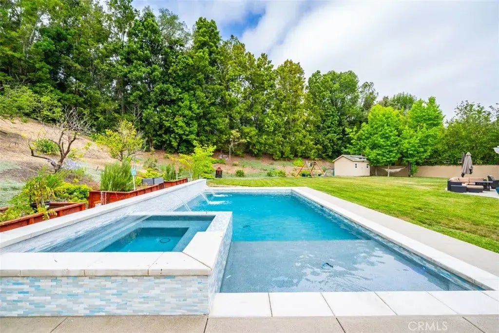 This impressive pool estate is nestled on a charming flat cul-de-sac in the highly sought after community of Nellie Gail Ranch. This newly built pool sits upon a huge, mostly flat, lot which abuts the expansive equestrian trails. A large grass area and tons of fruit trees for your private orchard adorn the rest of the yard. The backyard is perfect for relaxing under the pergola. The inside is just as impressive with soaring two-story ceilings, a sweeping newly installed circular staircase and a gourmet kitchen. The kitchen features stone counter tops, high-end stainless-steel appliances, massive refrigerators, a huge island with loads of storage, walk-in pantry. This home features 4 bedrooms, 2.5 bathrooms, 3-car direct access garage, triple glazed Pella windows, full house ePipe-coated water pipes with a transferable warranty, energy efficient pool equipment, huge driveway, indoor laundry room, and all new floors.