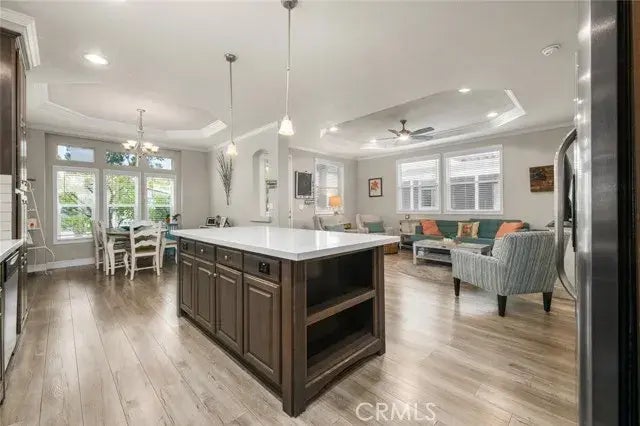 This 55+ Senior Living Park Home has it all! Situated in Rancho del Rey one of Huntington Beachs most highly sought after Manufactured Home Parks. Convenient to Sandy Beaches, Coastal Communities Hiking Trails, Shopping, Fine Dining Restaurants and much more. Interior features include, open floor plan, high ceilings with crown moulding throughout all rooms, beautiful simulated wood laminate flooring, highly efficient Thermo pane Windows and inside laundry room with walk-in pantry. The spacious kitchen opens to the living room featuring a large Island with quartz countertop, separate dining area and plenty of cabinet space. Other kitchen features include a stainless appliances, dishwasher, built-in microwave oven and gas range/oven. Master bedroom offers plenty of space for a King size bed and furniture, the on suite Master Bath has a spacious walk-in closet, dual sinks and walk-in shower. Exterior features include beautiful mature trees and landscaping, wraparound covered patio/porch, covered carport for up to 3 cars, storage shed and side yard patio with room for outdoor furniture for entertaining family and friends. This home is situated in a very secluded interior area of the park, if tranquility and being close to the ocean is what you are after then this is the one for you.