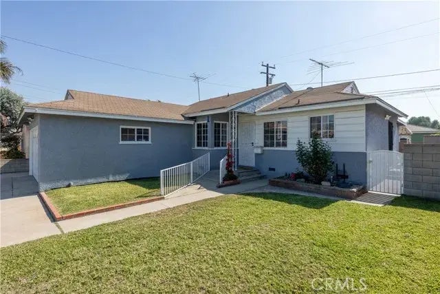 Welcome to this charming single-story family home in one of the most desirable neighborhoods of Bellflower. This cozy, and well maintained 3-bedroom home offers a perfect blend of comfort and style. As you enter you will notice the abundance of natural light with the large family room window. The dining room flows seamlessly into the living area, creating a warm and inviting space for gatherings. Move in ready and was recently painted and has new wide planked, luxury vinyl flooring throughout. The home has smooth ceilings with recessed lighting and crown molding. New fixtures throughout, new blinds and ceiling fans add both style and charm. No need to worry about the hot summer days with the large capacity air conditioning system. The updated kitchen offers plenty of cabinet space and conveniently flows into laundry area and small bathroom. Enjoy the large yard with endless possibilities. Washer/Dryer (Maytag) AND refrigerator (Frigidaire) are in excellent, like new condition and can stay in the home as part of the sale. Close to freeways, schools, restaurants and walking trails. Perfect home for first time homebuyers or rental income opportunity.